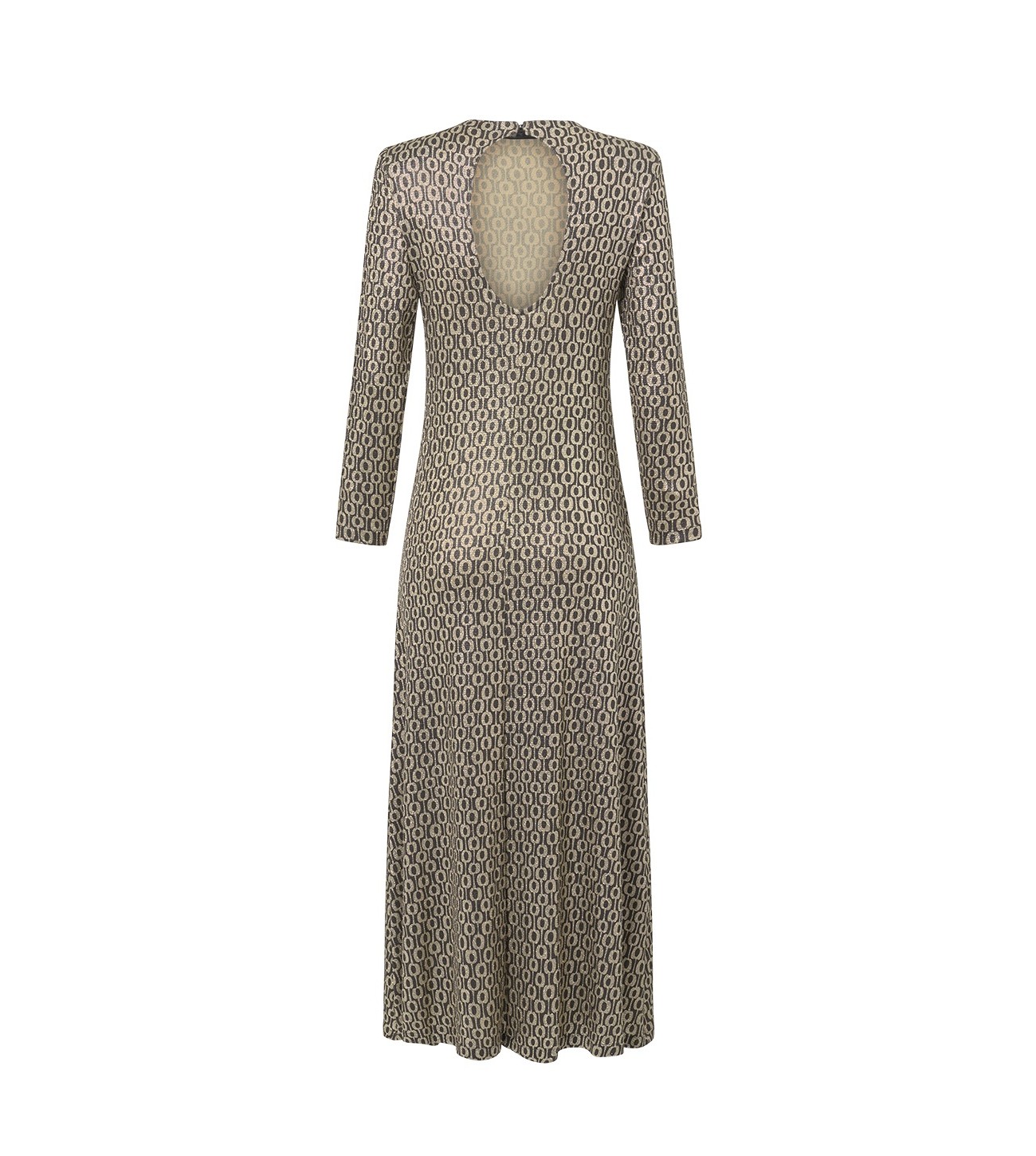 KNIT LUREX PRINT DRESS WITH OPENING AT BACK AND SHOULDER PADS SIYU BLACK DILEMA PAILLETTES