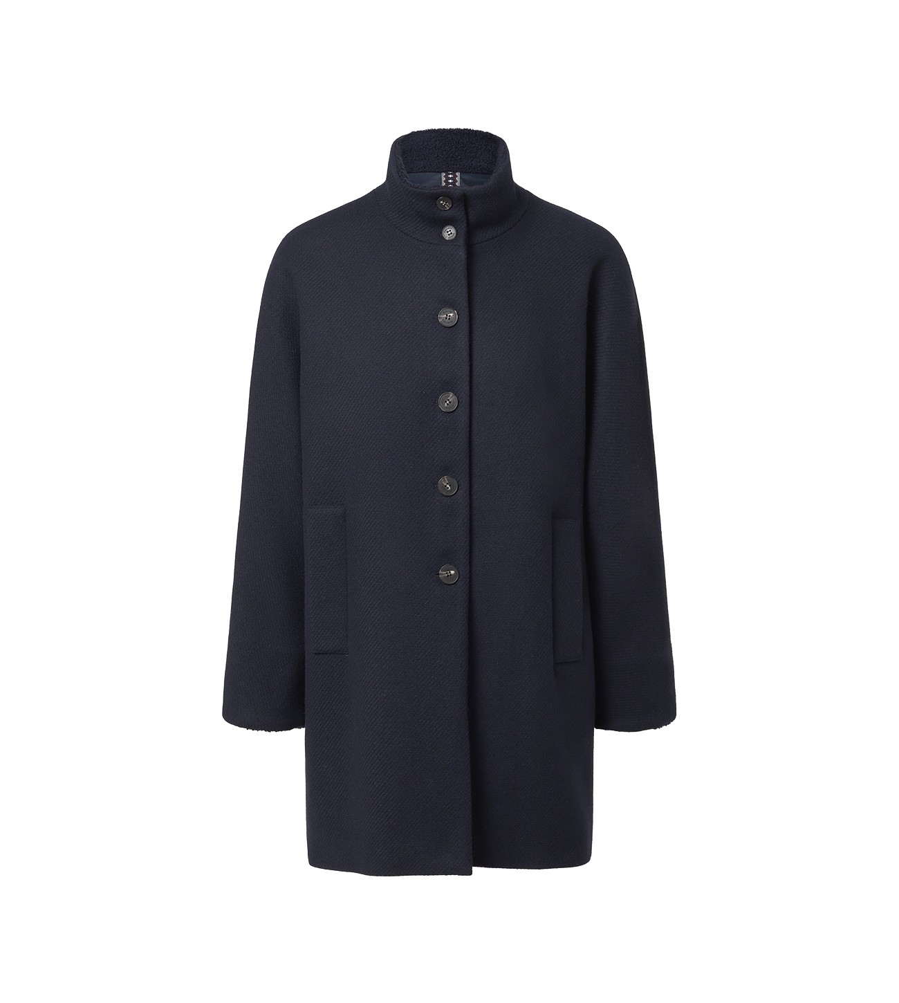 OVERSIZED COAT WITH CHIMNEY COLLAR AND INSIDE CUFFS AND COLLAR IN FAUX SHEARLING MARIONA NAVY 2512N