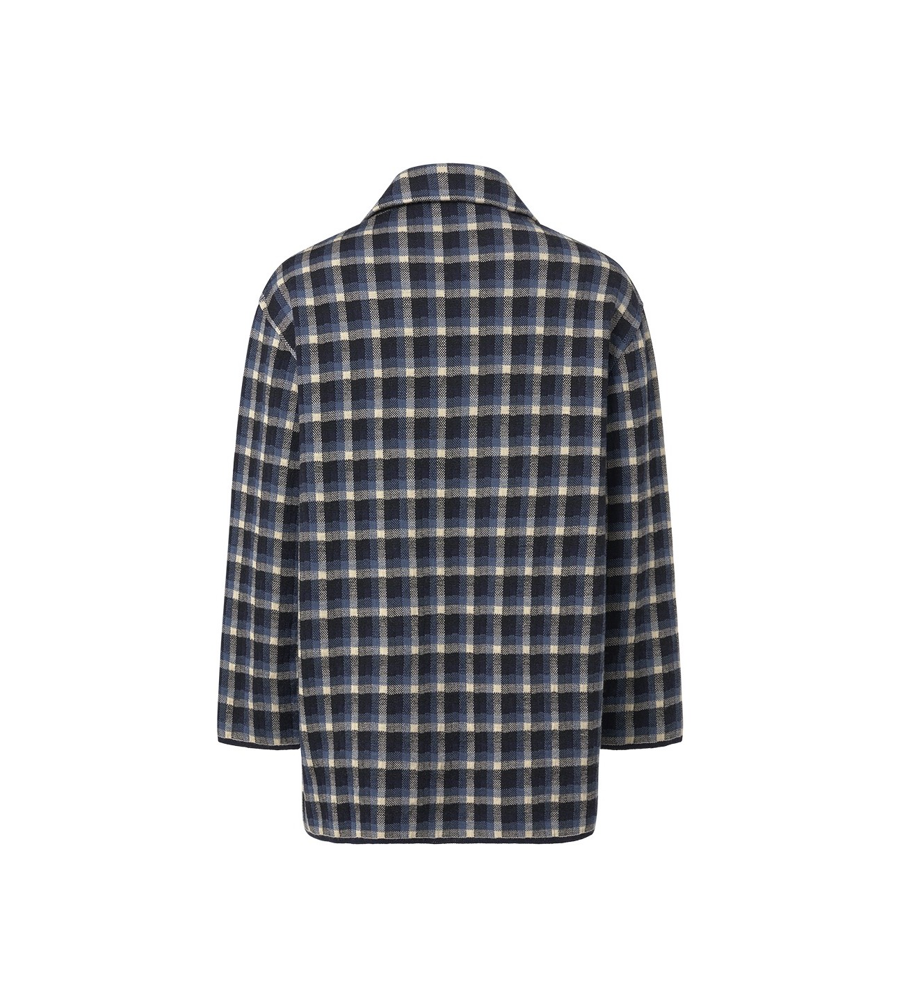 OVERSIZED CROSSOVER CHECKED JACKET WITH SIDE POCKETS SIYU BLUE K AYANTE