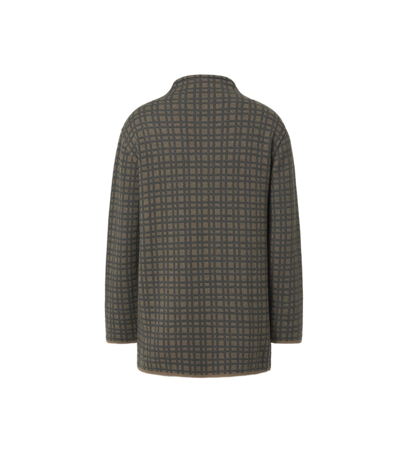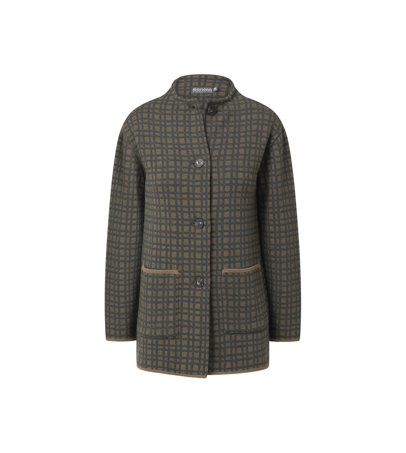 KNIT JACQUARD CHECKED JACKET WITH MAO COLLAR MARIONA CAMEL 1107P