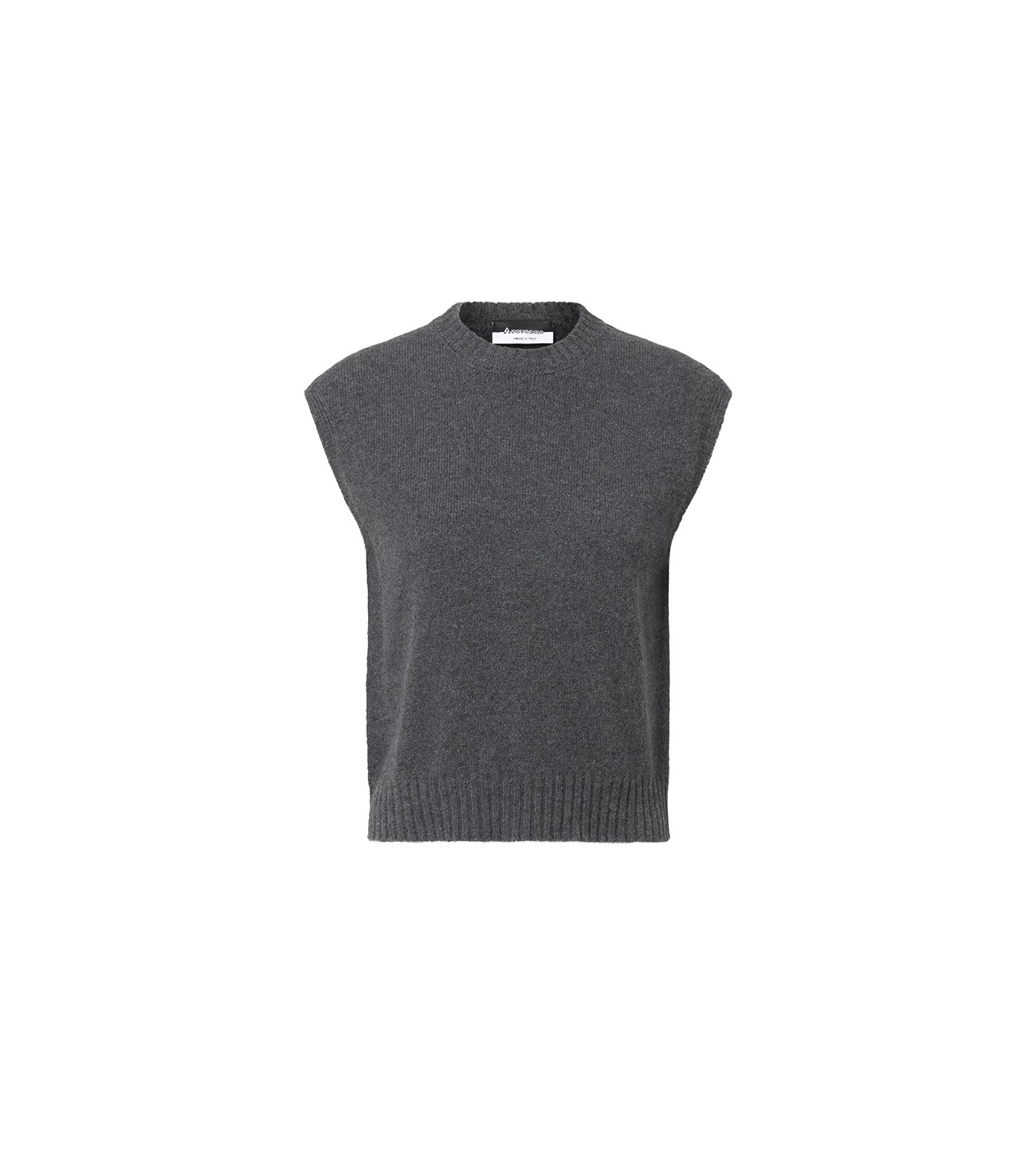 STRAIGHT FIT ROUND COLLAR VEST WITH RIBBED HEM AROVESCIO DARK GREY 1618
