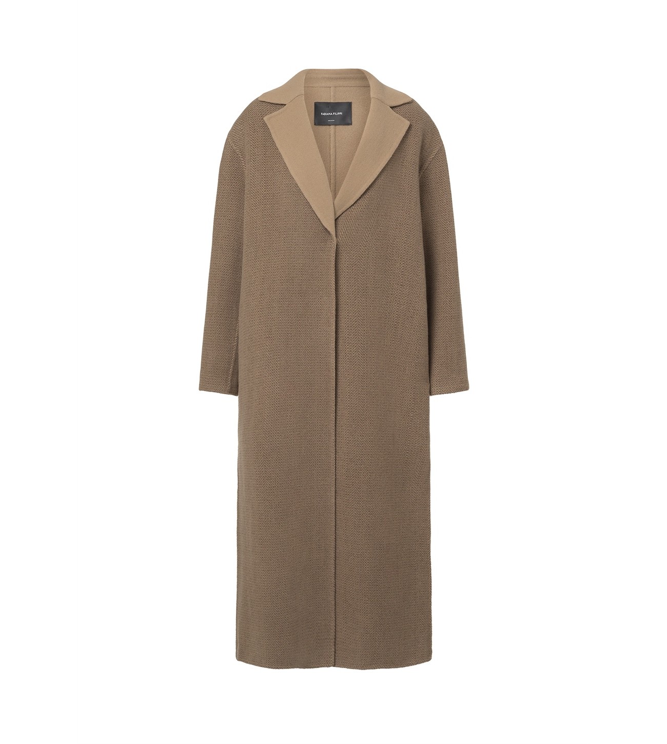 ABRIGO OVER LARGO ESPIGA CON FRUNCIDO EN CINTURA Y CORTES LATERALES FABIANA FILIPPI CAMEL CTD225F715