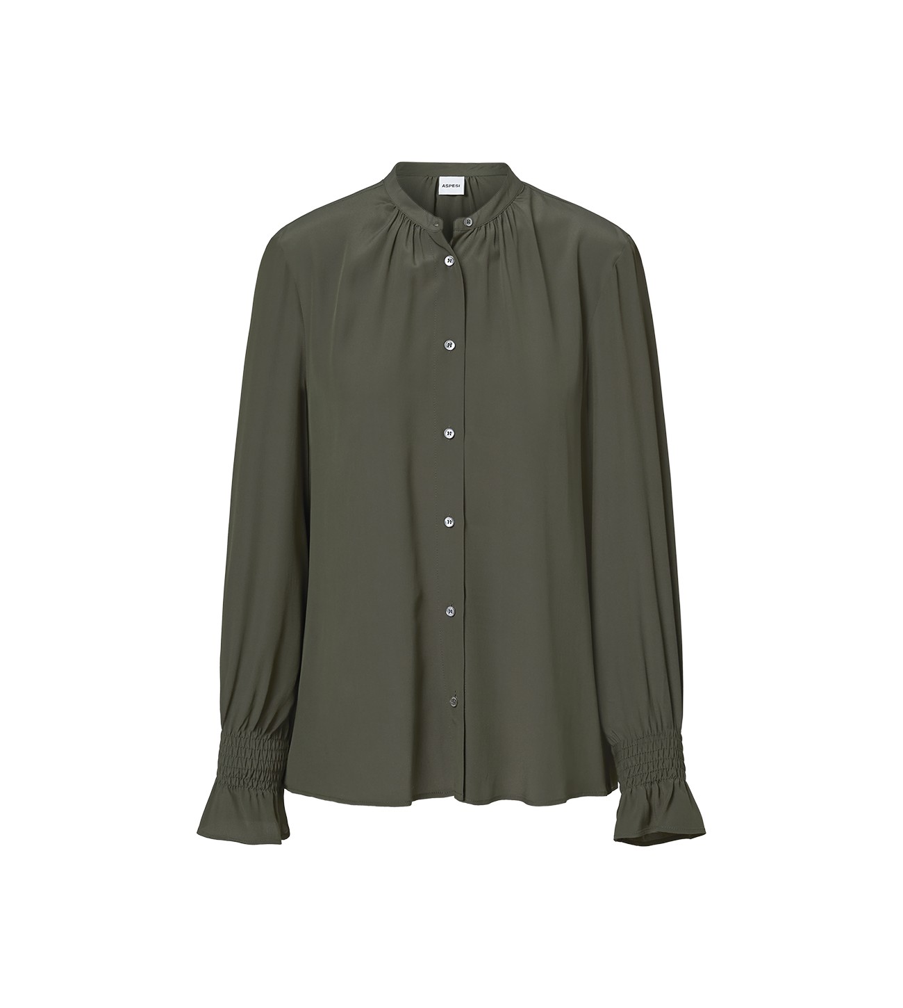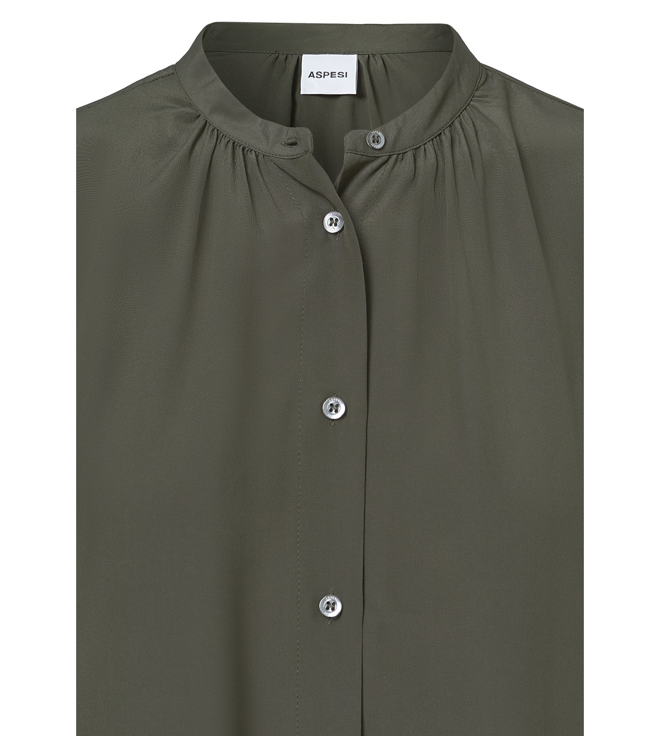 CAMISA CON CUELLO MAO Y PUÑOS FRUNCIDOS EN CREPE DE CHINE ASPESI KAKI 5490