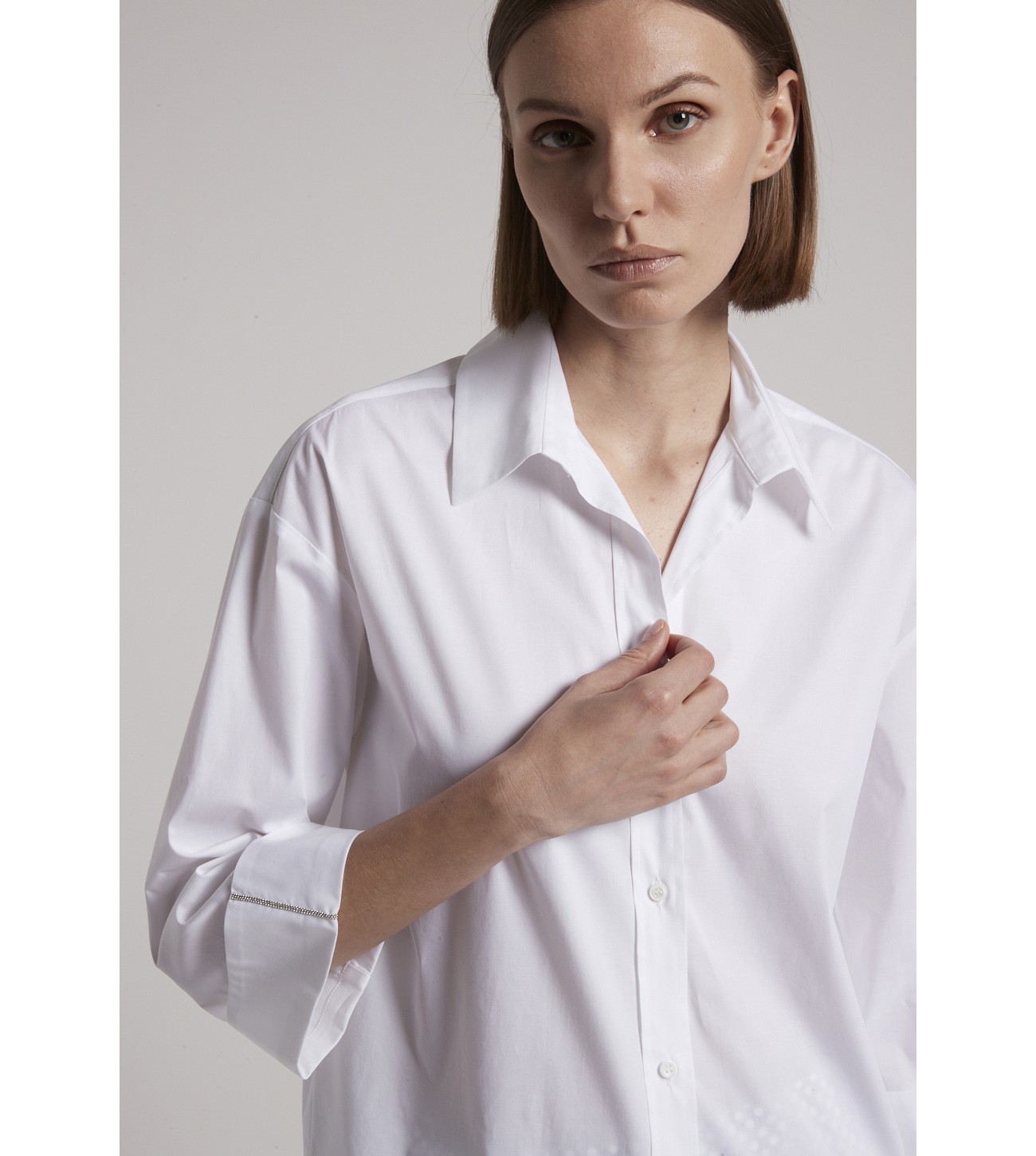 CAMISA POPELIN ABERTURA TRASERA DETALLE CADENA PUÑOS PESERICO BLANCO S06717