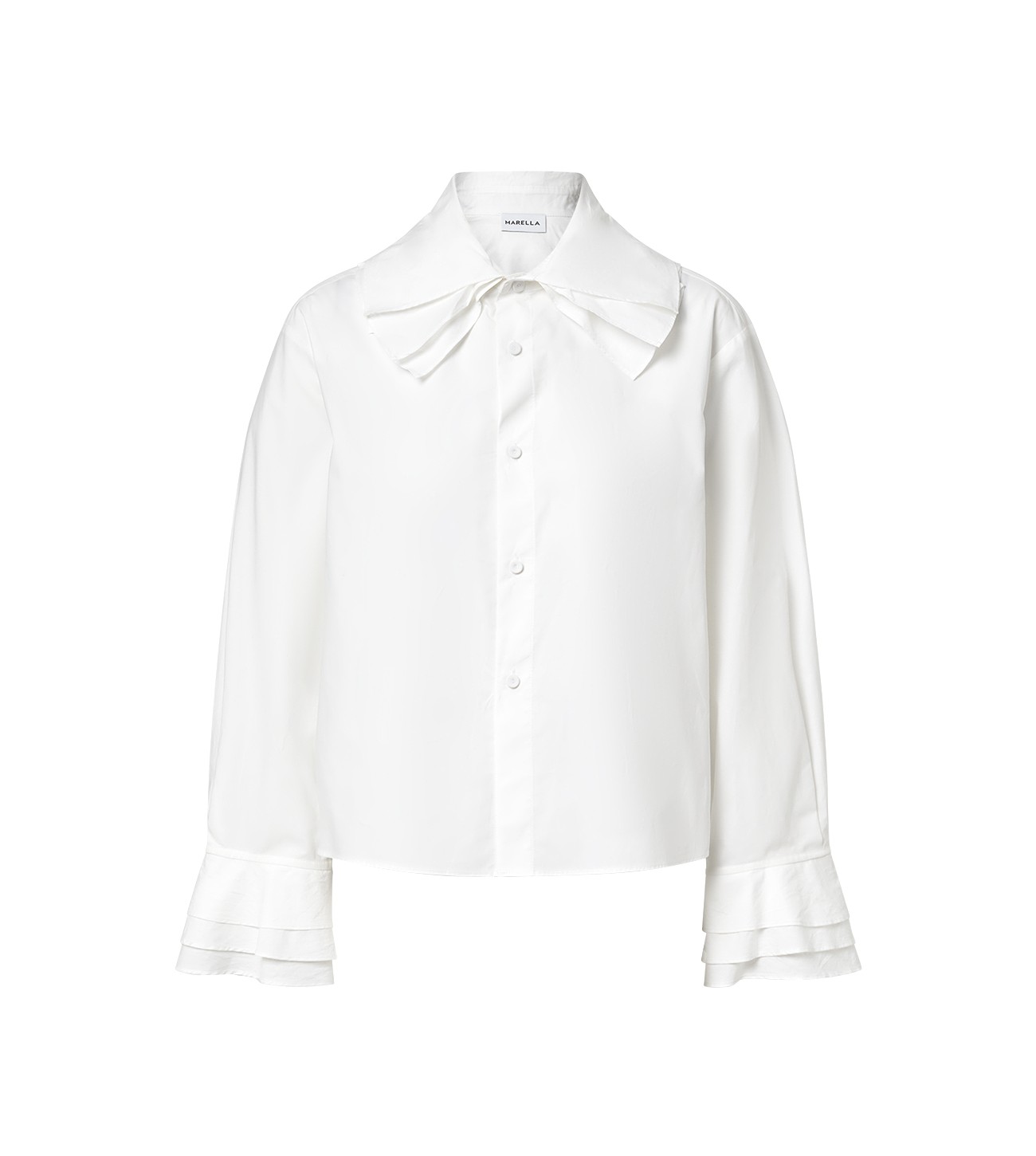 CAMISA CORTA EN POPELIN CON VOLANTES EN CUELLO Y PUÑOS MARELLA BLANCO 2613111081200