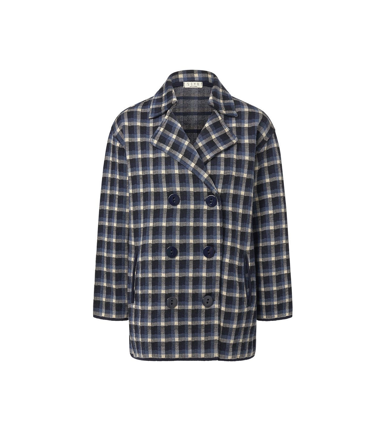 CHAQUETON OVER CRUZADO DE PUNTO DE CUADROS CON BOLSILLOS LATERALES SIYU AZUL K AYANTE