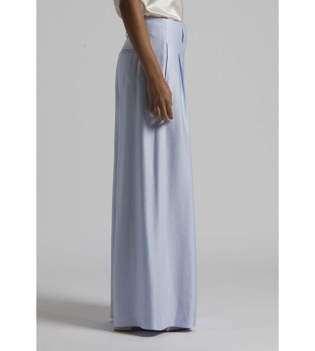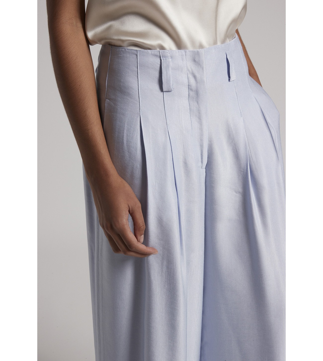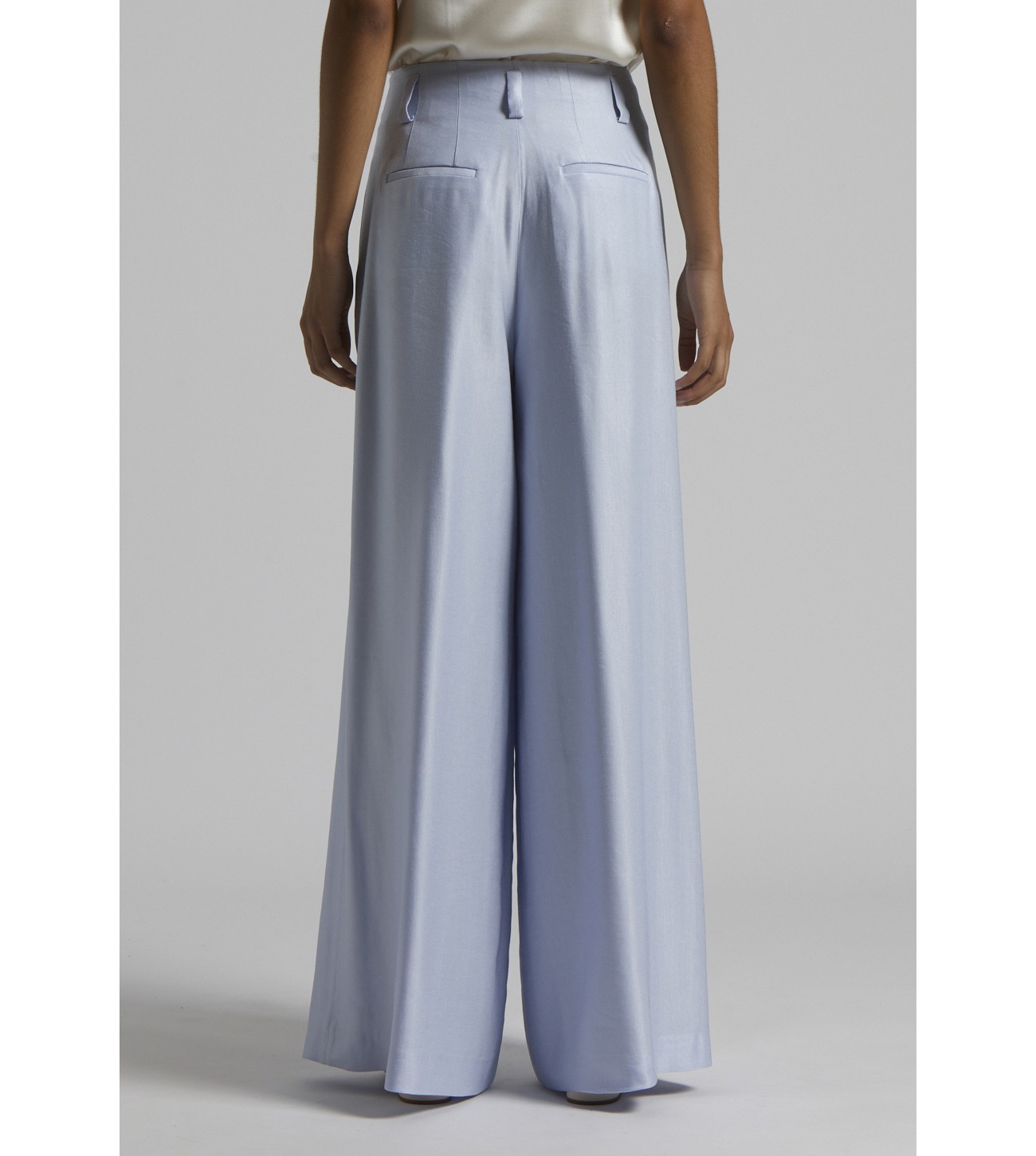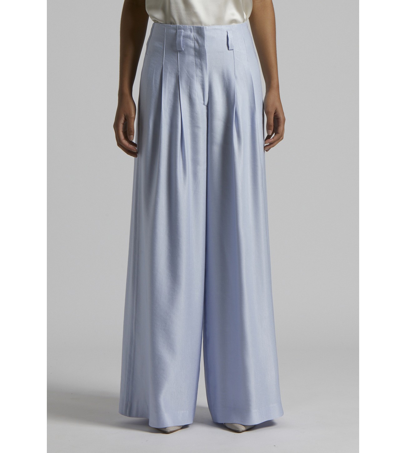 PANTALON ANCHO PINZAS SATINADO PESERICO AZUL LAVANDA P04085