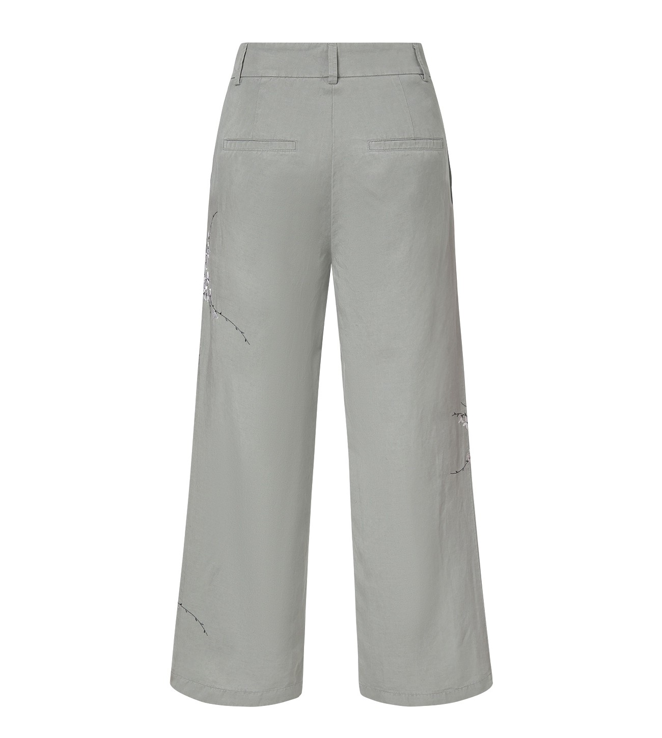 PANTALON ANCHO BORDADO FLORES CAMBIO KAKI CLARO