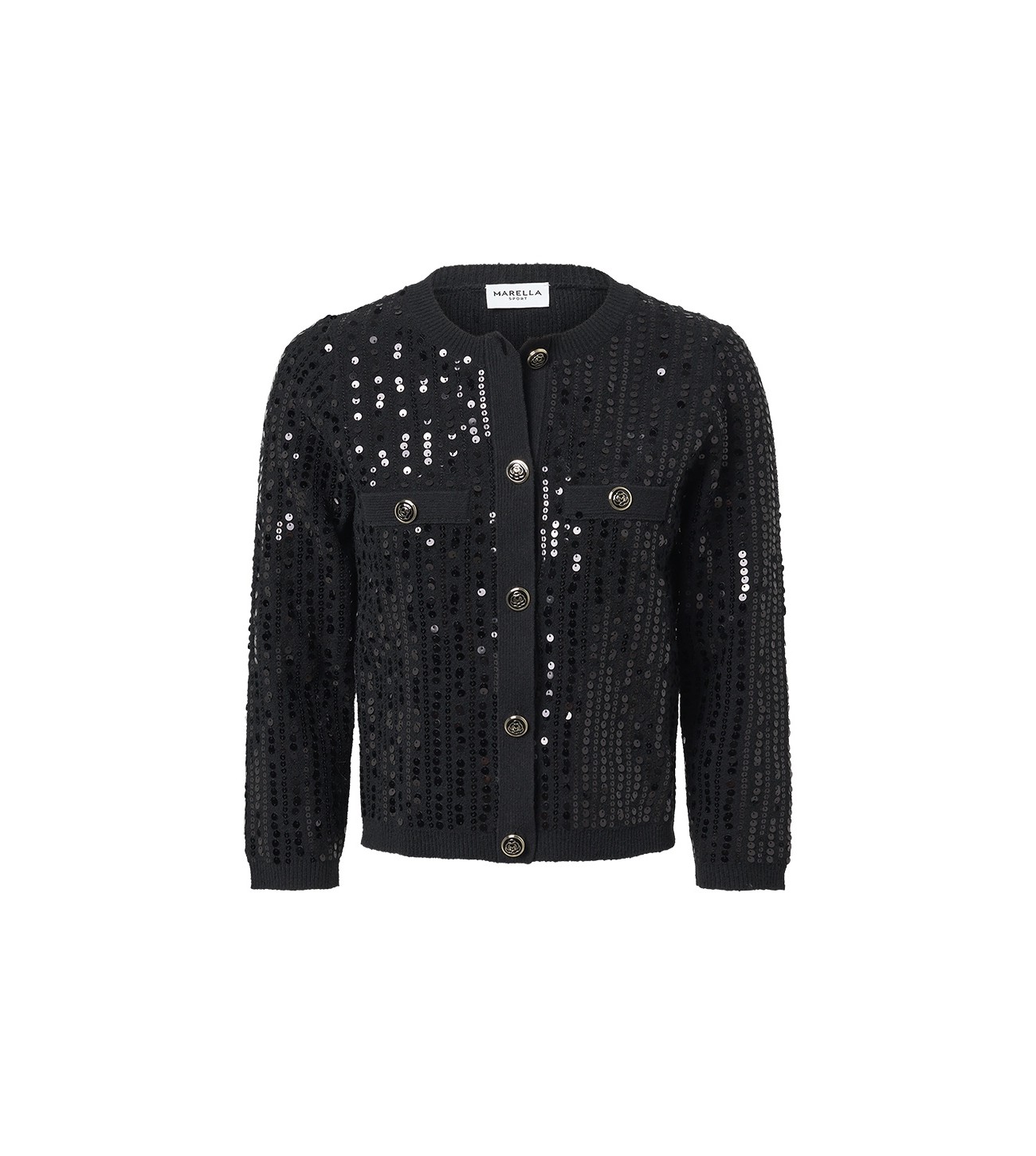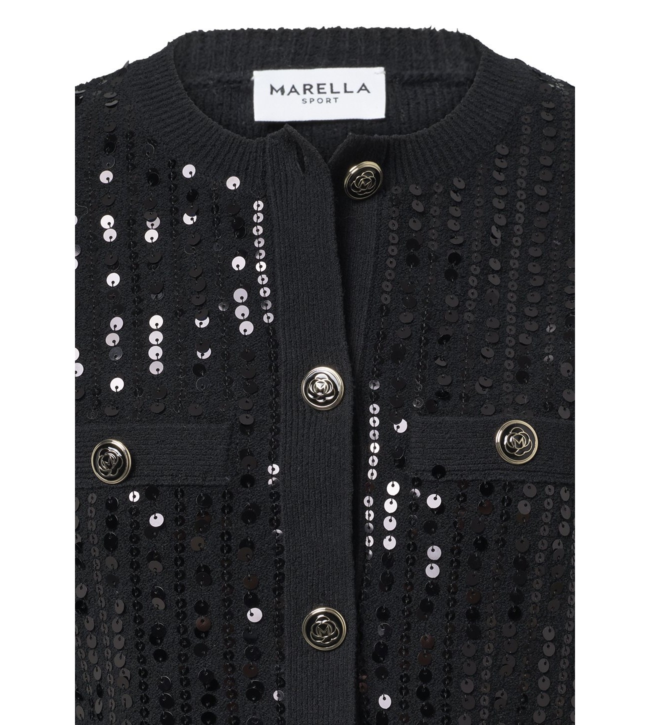 CARDIGAN LENTEJUELAS ENTALLADA Y CORTO CON BOLSILLOS MARELLA NEGRO 2523346094200