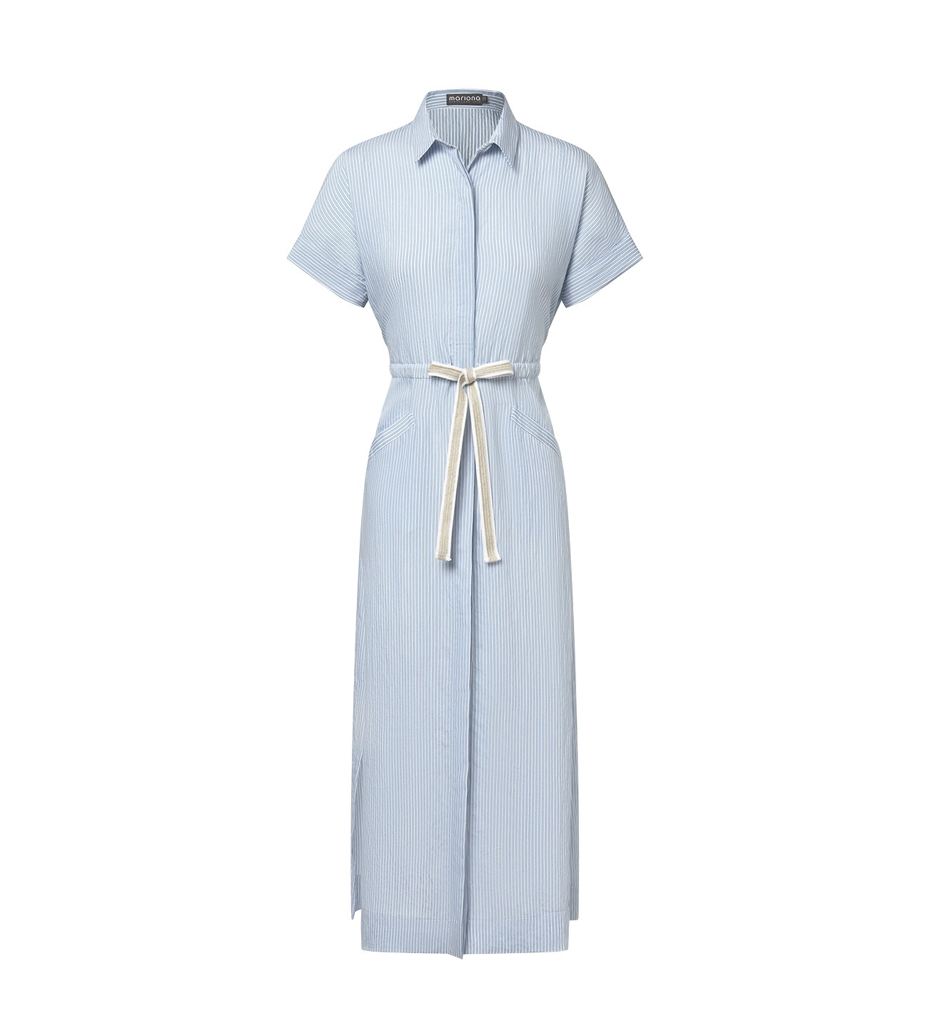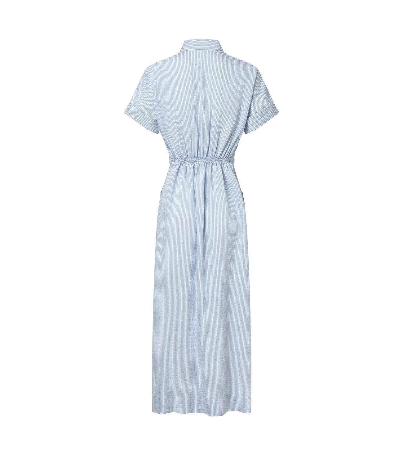 VESTIDO CAMISERO RAYAS CON CINTURON CONTRASTE Y GOMA ESPALDA MARIONA CELESTE 4087H